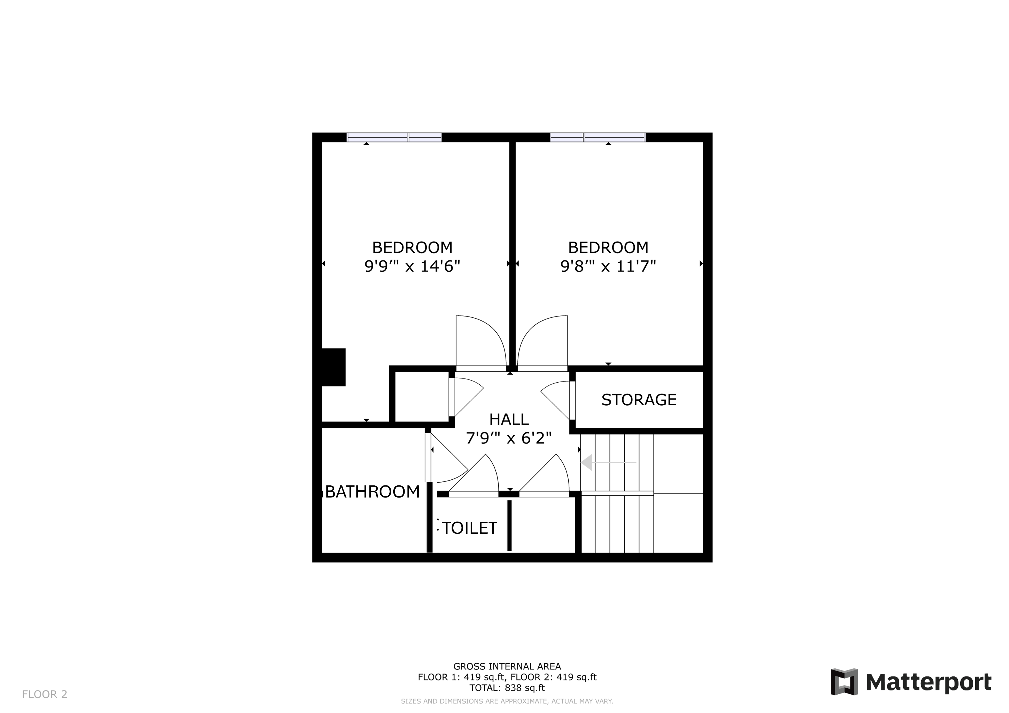 Two well-proportioned bedrooms upstairs, ideal for a comfortable master and guest room or a home office.